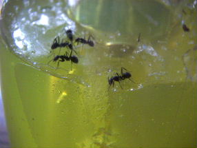 ゼリーの素Bを入れると液体がドロドロになってきます。